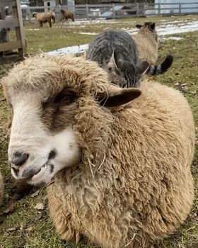 绵羊沃利也默许了欧内斯特的地位,惬意地让它坐在自己身上抓虱子。
