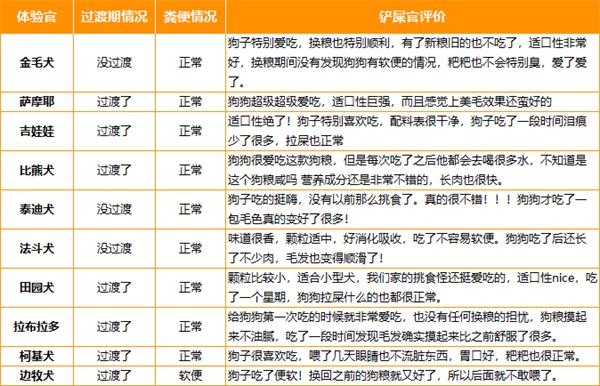 为了观察胖小虎这款狗粮的适口性,我们邀请了几名宠主一起进行喂食观察,在连续喂食一周以上之后,收集了狗狗们在换粮期间的粪便情况、进食量等信息。