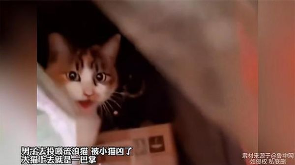 男子去投喂流浪猫, 被小猫凶了,大猫上去就是一巴掌