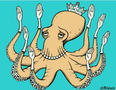章鱼是任何无脊椎动物的最大脑。常见的章鱼在其大脑中有大约1.3亿个神经元。一个人有1000亿。然而,章鱼的五分之三神经元不在大脑中; 他们在怀中。每个手臂都有自己的想法,可以这么说,如果切断(章鱼可以再生的话),它们会一边走一边,甚至抓住食物,就像它在附着时一样。