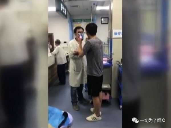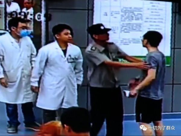 8月26号凌晨4点多 ,赵大哥带着自己受伤的大金毛匆匆忙忙来到急诊室,当时金毛的脖子后面已经出现了一大块血迹,但是由于急诊室还有病患等待治疗,医生并没有顾得上赵大哥和金毛.看着自己的爱狗一直没有得到救治处理,赵大哥生气了.不停地撕扯着医护人员衣服要求先治疗他的狗。赵大哥几度崩溃的又哭又闹.在医生拒绝先治疗狗的时候,赵大哥着急的踹了抢救室的门.