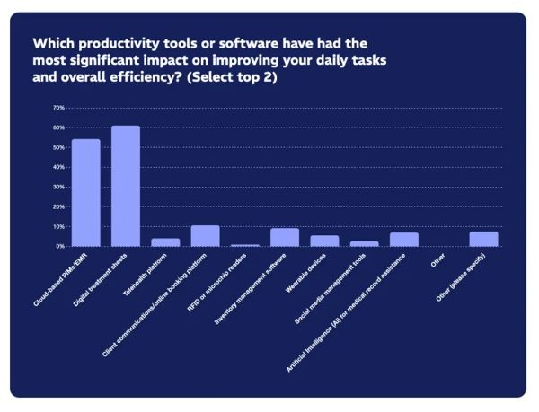 数字治疗表 (76%) 和基于云的PIM/EMR (71%) 是改变工作流程和提高效率的出色工具。