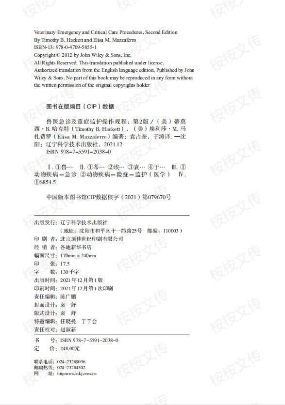 兽医急诊在宠物医院的日常工作中占据了一大部分,而由此引起的宠物监护自然就成为了重中之重,因此兽医急诊与监护技术是兽医技术人员必须掌握的一项技能。《兽医急诊及重症监护操作规程》第2版由科罗拉多州科林斯堡科罗拉多州立大学James L.Voss兽医教学医院的急诊和危重护理医学主任和小动物医学参谋长TimothyB.Hackett和康奈尔大学兽医专家的一名批判性专家Elisa M.Mazzaferro编著,特邀中国农业大学兽医博士袁占奎领衔翻译。
