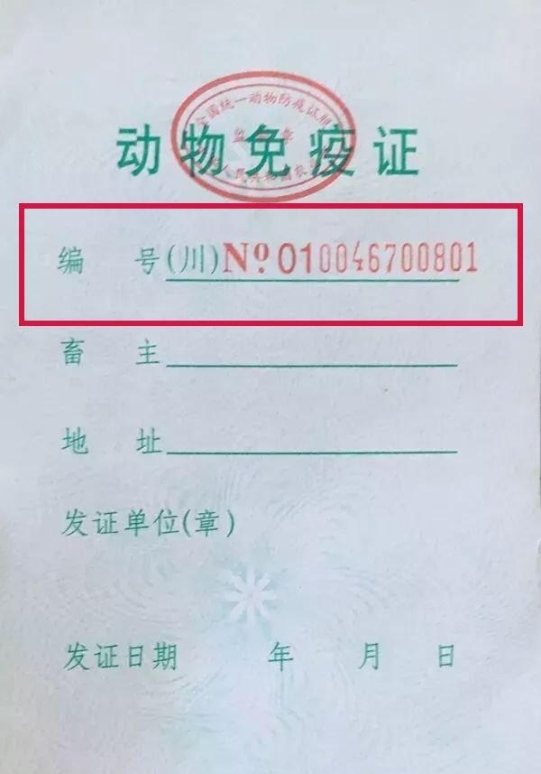 免疫证内页照片是带有注射狂犬疫苗日期的内页。并非是带有免疫证编号的封面页。
