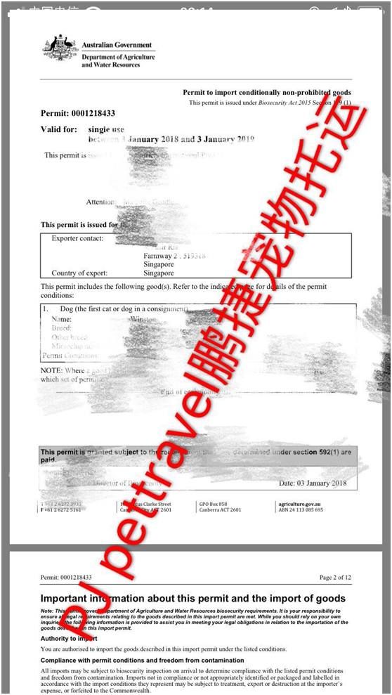2. 经过新加坡中转去往澳洲http://www.agriculture.gov.au/cats-dogs/temp-suspension-dog-imports-singapore-civ