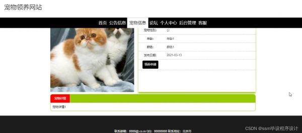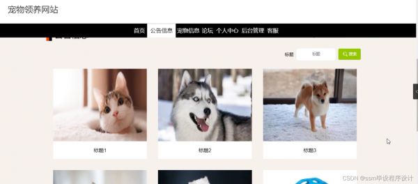 在当今社会,宠物已经成为许多家庭的重要成员,为人们的生活带来了欢乐与陪伴。随着人们生活水平的提高,养宠观念的转变,越来越多的家庭和个人愿意领养宠物。然而,在现实生活中,许多人由于各种原因无法领养宠物,如居住环境、时间安排等。此外,流浪动物问题日益严重,许多流浪动物需要一个温暖的家。因此,一个宠物领养网站应运而生,旨在为有领养需求的人和需要被领养的宠物提供一个平台,让宠物找到合适的主人,同时也让那些想要领养宠物的人能够找到一个可靠的途径。
