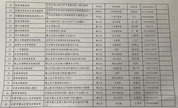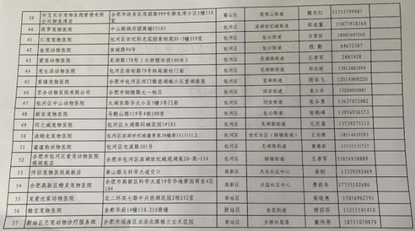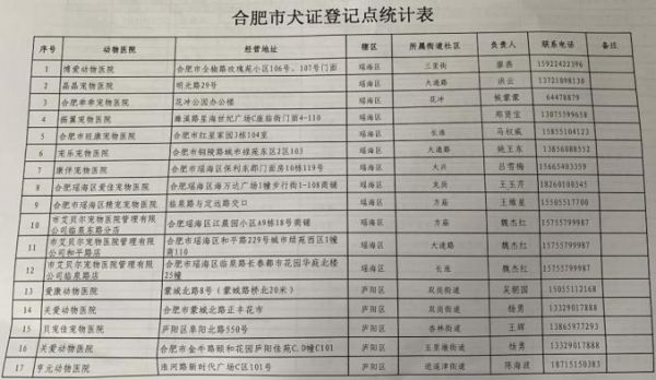 合肥市第一批犬证登记点(57个)具体名单↓↓↓