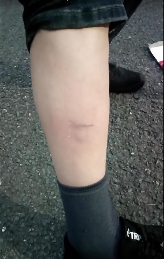 另外一段视频显示,一名男子的右小腿有一处伤口。视频发布者称,该男子4月6日下午在德昌公园内被狗咬伤,这条狗当日已经咬了6个人。