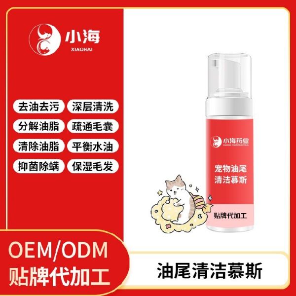 宠物猫咪狗狗的清洁慕斯是一种宠物用泡沫慕斯类沐浴清洁用品,适用于那些不喜欢水或幼期、疾病期等不方便水洗的宠物。犬猫清洁慕斯不伤害宠物的皮肤和毛发,还能改善宠物的体臭和异味问题,可以帮助去除宠物身上的污垢和异味,还能使爱宠保持清爽和干净的状态。使用前可先梳理宠物毛发,使用时将慕斯均匀地涂抹在宠物的皮毛上,再用干净的毛巾擦拭即可。同时要注意避开宠物的眼睛、鼻子和嘴巴,以免引起不适。