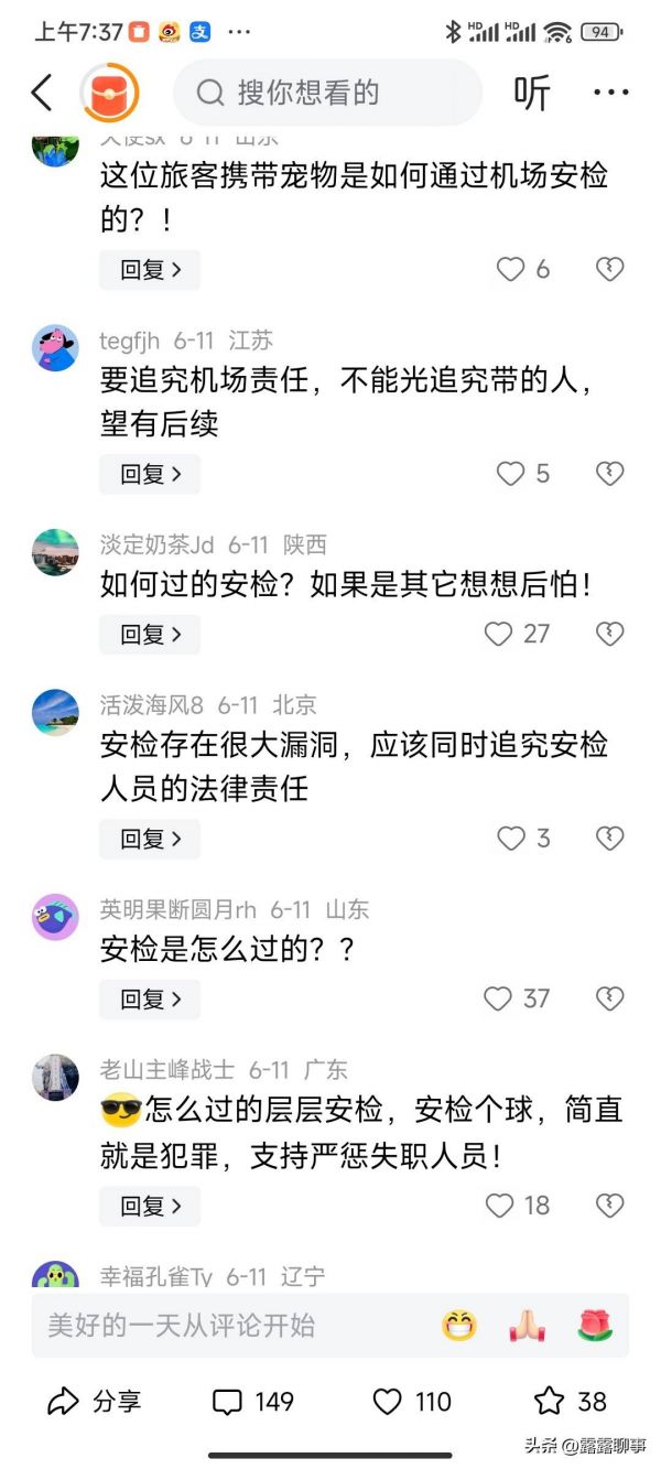 不少网友表示难以理解郭某是如何带着宠物通过安检的。现代化的安检设备对于任何违禁物品都有严格的检测机制,很多小物件如打火机、化妆品也都会被严格检查,如何能够让一只活体动物顺利通过安检,令人大惑不解。更有网友指出,尽管这只宠物体型小,但其快速的奔跑能力可能导致飞机内部电线被咬断,或是堵塞机舱重要部件,严重时甚至可能威胁到飞行安全。
