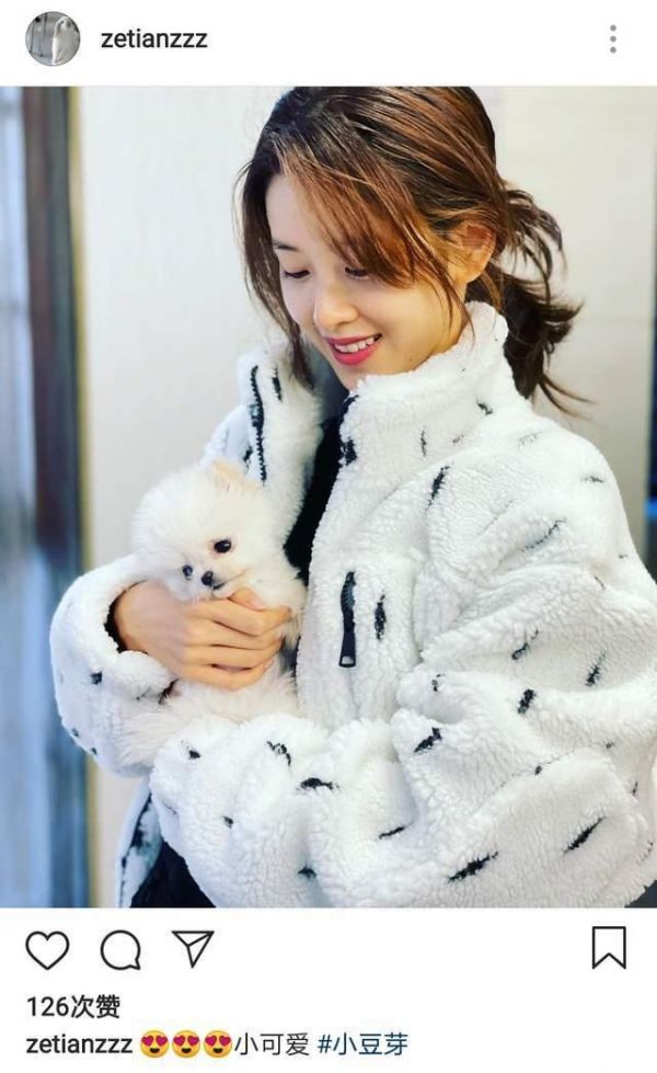 照片中的奶茶妹妹穿着白色毛茸茸的外套,怀里的宠物狗的颜色快和衣服融为一体,歪着小脑袋一副可怜巴巴的模样,提不起精神,话说能成为章泽天的宠物也是一种福气,想必伙食和居住环境都会尤其的好,还有什么不开心的呢!