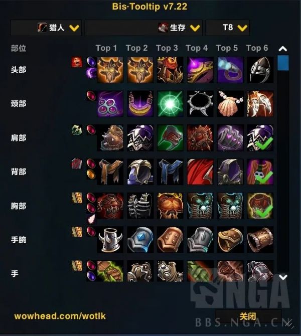 但毕竟我们是抄作业嘛,WLK各阶段的装备选择其实早有答案,完全可以去某隐士小程序各大猎神up那里抄作业,或者下个Bis-Tooltip插件,具体的装备排名很明了,照着抄便是。