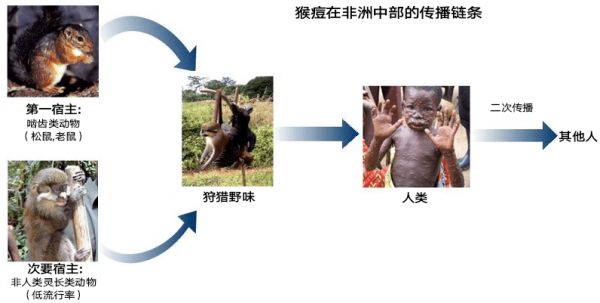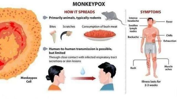 猴痘是一种人畜共患疾病,这本身就表明它可以在动物和人之间传播,它是一种正痘病毒引起的,主要把一些小型哺乳动物身上当成宿主来维持生存。人类通过直接接触受感染的动物而感染,往往是在捕猎或者触摸感染动物的皮肤和体液时候被染上病毒,多数小型哺乳动物携带病毒后不会发病,而非人类的灵长动物(猴子,猿类)可能会感染猴痘,并出现疾病表现。