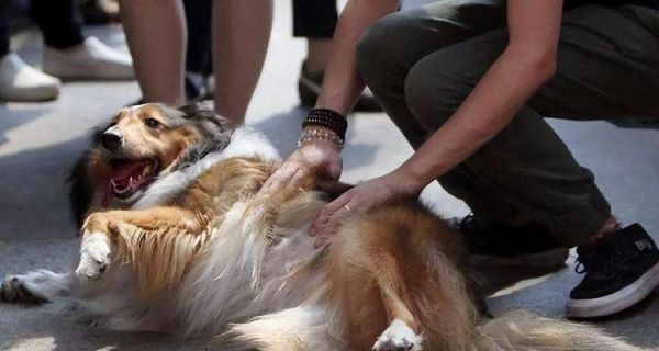 宠物揉肚子时会有各种各样的反应,有的会翻滚、露出笑脸,有的会发出愉悦的声音。
