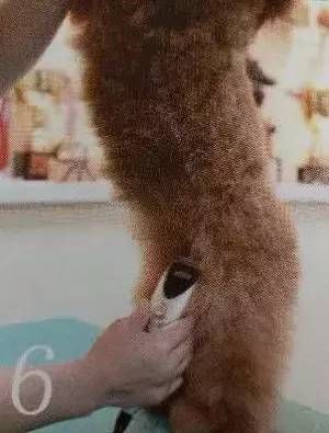 剪屁股部位的毛发时,主人要站在狗狗身体的一侧,一只手从它下腹伸出去,将尾巴拉倒一旁,让屁股露出来。