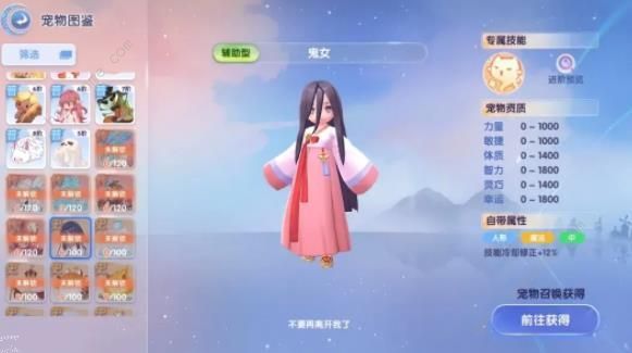 物理系神宠,技能可以增加自己和主人的攻速,移速和吸血。对于猎人,盗贼等追求攻速的职业来说非常强大。不过初始的鬼女技能效果比较低,持续时间还短。要到5阶后鬼女才比较强力。