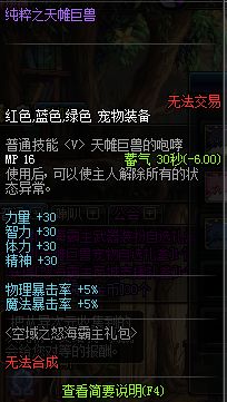 《dnf》天帷巨兽宠物加多少属性 天帷巨兽宠物加成属性一览