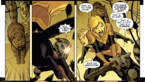 漫画中,惊奇队长卡罗尔和她的宠物猫Chewie