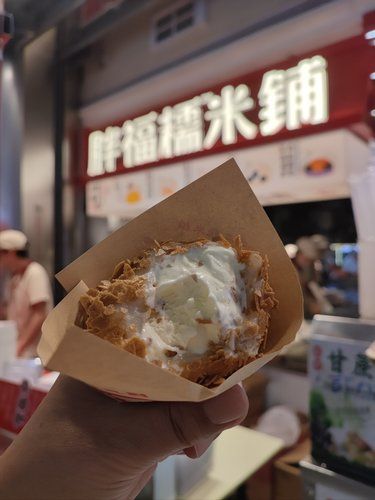 这家小店在happy站台。位置很好找。每次过来排队的人都很多,但是出餐的速度还是比较快的。每一个糯米团都是现做的,今天吃了一个冰淇淋的糯米团。真的好好吃啊,外皮糯叽叽的,里面的冰淇淋冰冰凉凉,甜丝丝的。糯米和冰淇淋混合在一起的口感真的是非常奇妙。#0元玩转这座城#城市向导官
