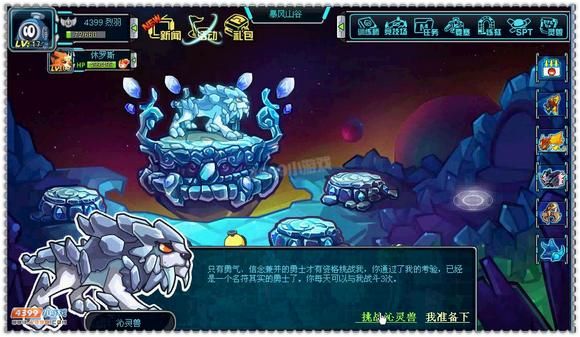 完成三章试炼之后就能从灵兽书点击沁灵跳到挑战沁灵的场景,暴风山谷这儿来了