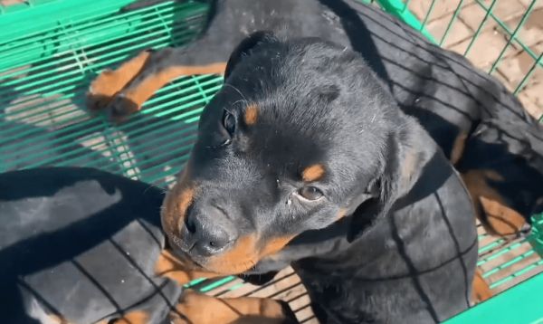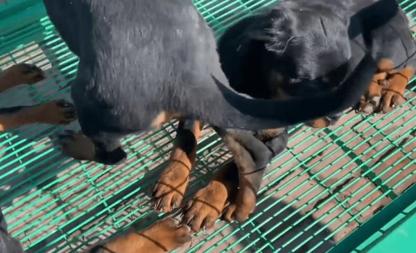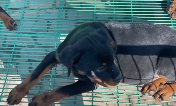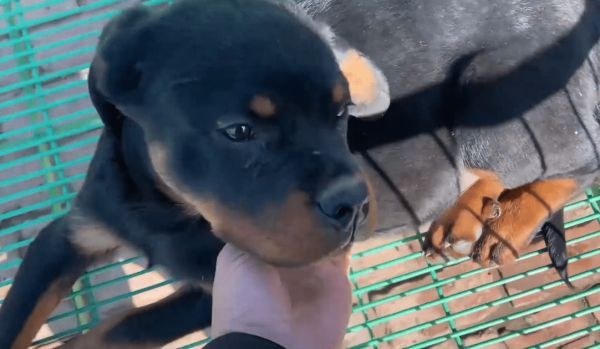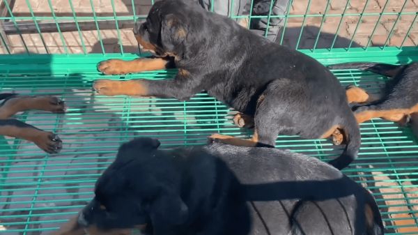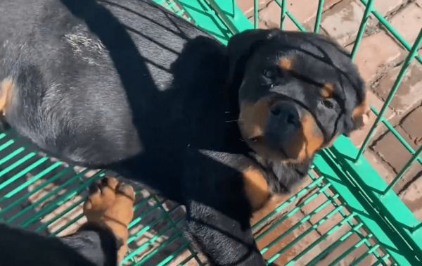 正当网友在狗市中闲逛时,在一位大哥的摊位旁,网友发现了一窝现如今已经非常少见的罗威纳幼犬。由于这一窝罗威纳幼犬的品相都挺不错的,每一只都被大哥喂得肥嘟嘟的,看起来也没有它们成年之后那般有攻击性,同时,现如今狗市里已经很少见到这一类的猛犬了,因此,网友就在大哥的摊位附近停下了脚步,和一旁正在卖狗的大哥闲聊了起来。