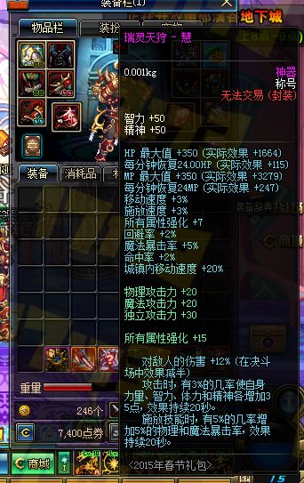 改版后(从称号附魔的宝珠上可以看出改变,从12的属强改成15了,物理攻击和独立攻击都有所改动)