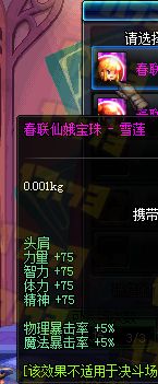 宝珠:护肩宝珠:四维+50,双暴+3%→四维+75,双暴+5%;称号宝珠:双攻+15,独立+20,属强+12→双攻+20,独立+30,属强+15