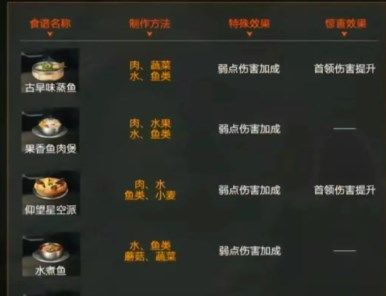 星球重启弱点伤害食谱配方一览 弱点伤害食谱大全