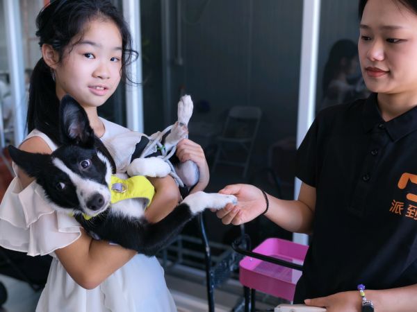 宠物候机楼工作人员蔡瑞琪,大二时就救助流浪猫狗,至今已有七八年,“临开业前还捡到一只土松犬,取名叫‘旺财’,已经被店长‘收编’了”。她介绍,这里所有工作人员都经过猫狗行为学培训,能让宠物在候机、打包、安检、托运时更舒适,效率也更高。同时,候机厅内还配备智能航空箱、宠物专车等专业设备,家长可通过远程监控、语音互动,体验标准化、人性化的宠物航空服务。