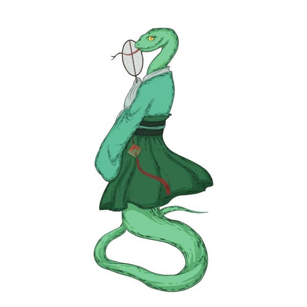 蛇是有鳞目蛇亚目动物,身体呈细长圆筒状,体表常覆有鳞片。蛇在中国的传统文化中被赋予了神秘、智慧和治愈的象征意义。蛇被视为万物生命力的象征,同时也代表着变幻、再生和不朽的力量。在中国的民间传说中,蛇常被描绘成具特殊的存在,而龙蛇相融的传说就表达了对蛇的崇敬。