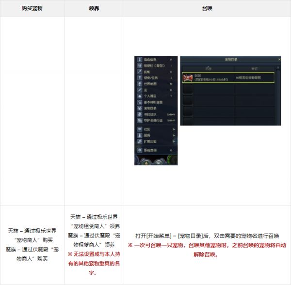 可从各种族大都市的宠物商人NPC那里购入,或是通过任务奖励获得宠物蛋。