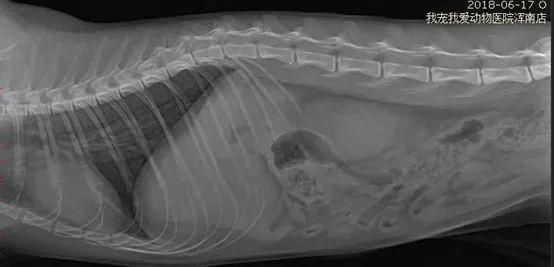 此外,对猫进行影像学猫腹腔右侧位DR和正位DR检查,通过综合分析,显示肠道小肠段均匀积气,最粗部位未大于第7腰椎直径。