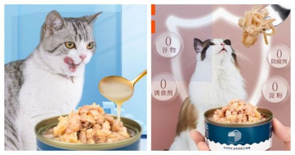 在视觉呈现上,不贩卖效果图而是以更落地的方式呈现每一款产品。用勺子、鲜美多汁的罐头以及猫咪的本能反应等一系列元素,设计构思出整幅场景插画,将「天然、新鲜」的品牌印象直观地传达给消费者;
