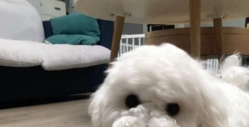 每次有骨头吃,比熊犬都会很开心