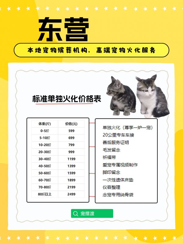 宠摆渡深知宠物对家庭的重要性,因此提供了一系列宠物殡葬服务,包括宠物遗体接送、遗体清洁和美容、定制告别仪式等。其服务团队以最大的尊重和同情心,陪伴每一位宠物主人度过这段艰难的时光。 个性化服务,纪念独一无二的生命