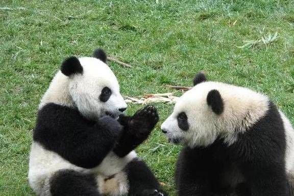 两只可爱的熊猫兄弟是在比划拳头吗