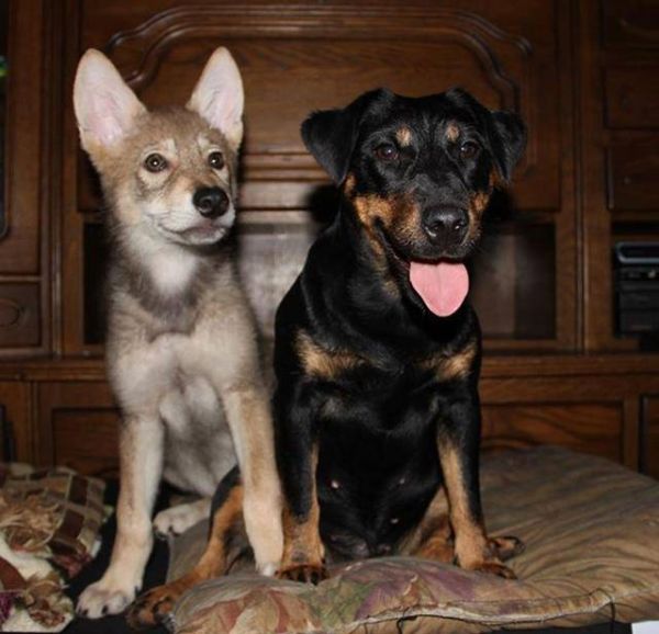 狼把家里其他两只狗当成了好朋友,它们经常待在一起玩耍,狼有时还会挺身而出保护这两只狗。