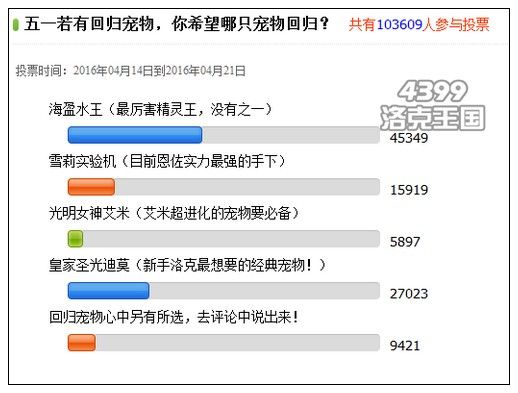 根据上期的投票来看,水王和迪莫呼声最高,不过能否在五一回归还是个谜哦~
