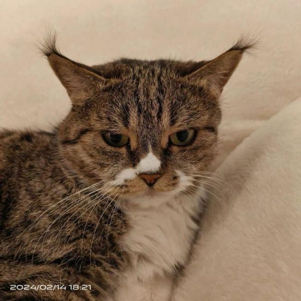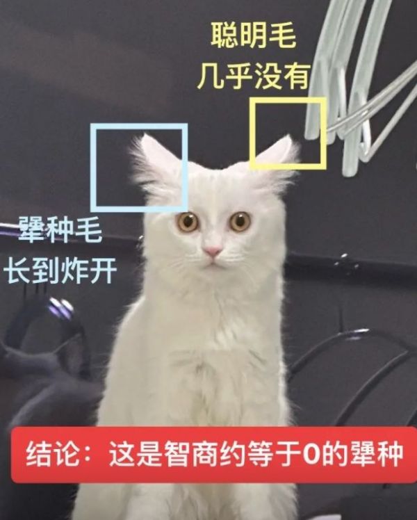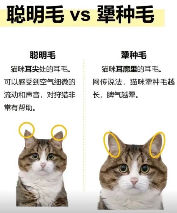 直到有一天她刷到了一个博主发的:聪明毛是猫咪耳尖处的耳毛,犟种毛是耳廓里的耳毛,而耳廓内的耳毛越长,脾气越犟。