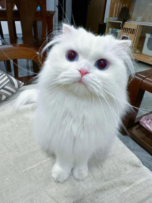 铲屎官@一个芥末养了一只小白猫,这只猫的耳朵内有很长的毛,铲屎官一直以为是聪明毛,还时常感叹肯定是自家小猫很聪明!