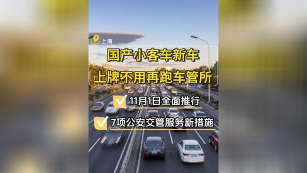 国产小客车新车上牌不用再跑车管所,线上直接办理 11月1日全面推行,同时推出6项公安交管“一网通办”服务新措施,一起来看看吧