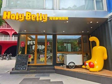#0元玩转这座城 门店好显眼啊哈哈哈,很可爱的店门设计,有一只可爱的黄色翘尾巴求玩耍的狗狗,进入店铺整家店很干净整洁,明厨感觉很放心。想给狗子体验下鲜食,比家里自己弄方便多了,这里口味配方也多,放冷冻还可以存三个月,要吃10分钟解冻就好。