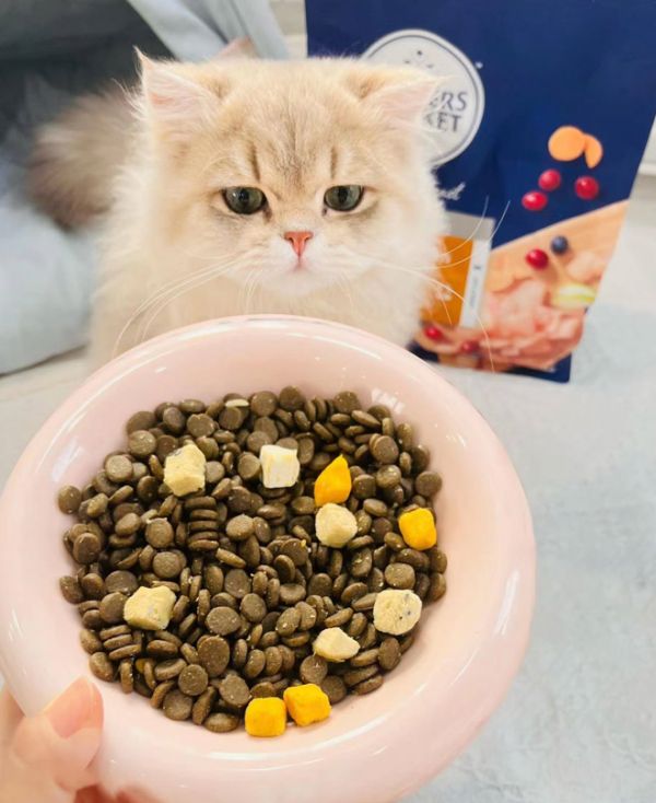 再说蓝宝食,旗下的全价猫粮也是符合幼猫饮食需求的,它的粗蛋白质同样≥40%,远远高于标准,而且动物来源也占到了75%,能够给猫咪提供充足的肉肉。它配方中添加了能够提供优质蛋白的鸡肉、可以清凉降火的鸭肉,以及可以亮毛护肤的三文鱼肉,同时还有鸡肉蓝莓、鸡肉蔓越莓、鸡肉、蛋黄4种冻干,可以帮助幼猫全方位发育。同样的,蓝宝食也是0谷物低敏配方,也不添加人工添加剂,对幼猫来说非常友好。