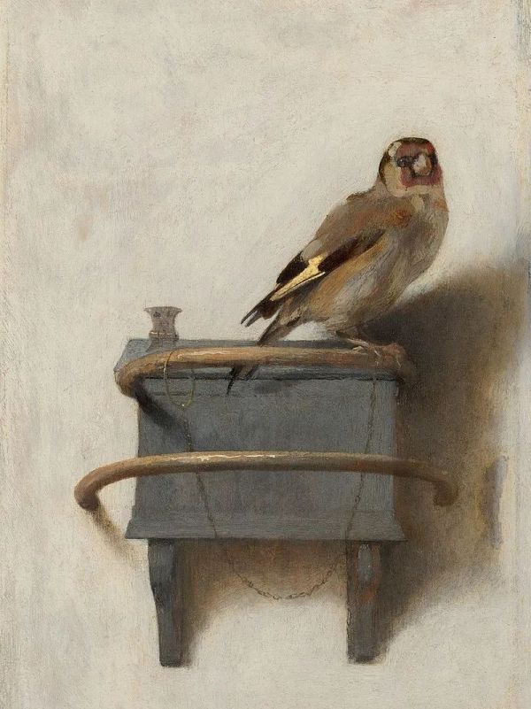 左一:卡雷尔.法布里休斯,《金翅雀》,1654