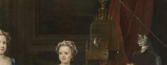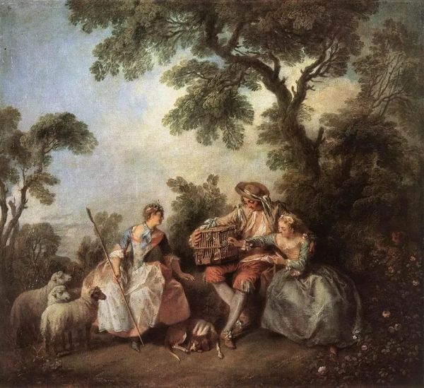 Nicolas Lancret, 18世纪,《鸟笼》布面油画, 描绘一群带着金丝雀出游的贵族。