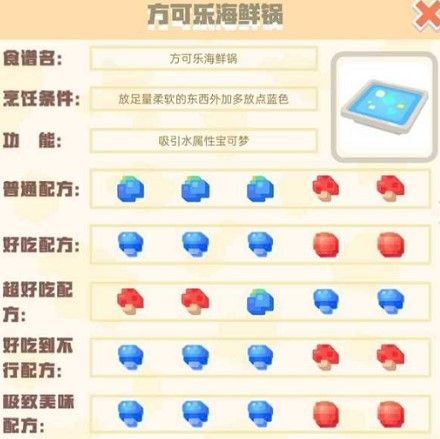 宝可梦大探险方可乐海鲜锅食谱配方及吸引宠物介绍