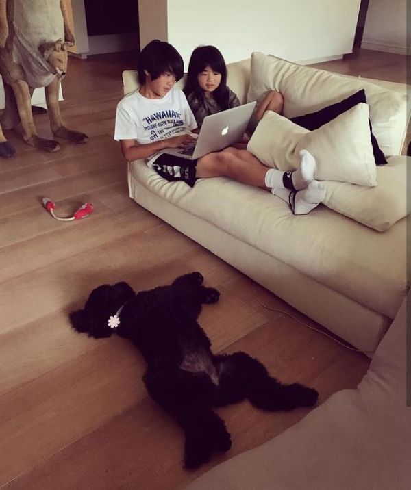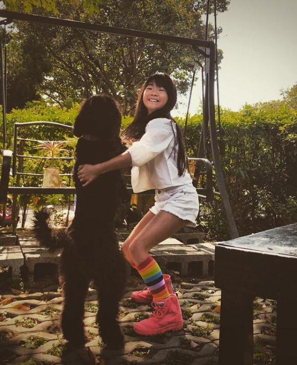 曹格晒女儿与宠物狗亲密互动,9岁Grace身材高挑,气质极佳