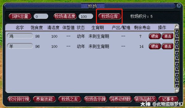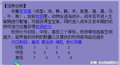点击你的牧场管理员进入你的牧场,这时候你的牧场是初级牧场,你可以饲养3个禽类,1个爬虫类,3个哺乳类,2个珍惜类。