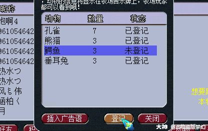 这时候你可以世界上去喊话,收取相应的动物。还需要收取一定量的饲料,饲料价格基本在1.8W一个,建议收取99个。