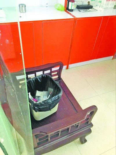 9月8日下午4点,记者来到江岸区二七路东立街的一家宠物诊所,诊所内只有一名工作人员,记者以给家中宠物猫注射三联针为名进行咨询,并到操作间进行查看。只见垃圾桶内一个黑色塑料袋和一般家庭用的无异,袋里有两只带针头的注射器,工作人员说,这个就是早上给狗打过疫苗以后留下的,垃圾袋里除了大量药品包装、棉签之外还有纸杯等生活垃圾。